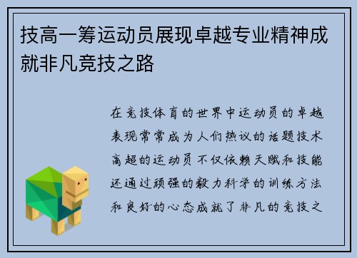 技高一筹运动员展现卓越专业精神成就非凡竞技之路